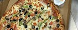 Vegetarian. Pizza sauce with mushrooms, green peppers, tomatoes, onions, black olives, and an extra topping of our signature cheese blend.